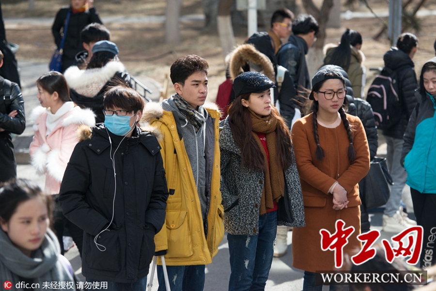 2016年2月15日,北京,中国传媒大学、中央戏剧学院、北京电影学院艺考初试拉开大幕。全国各地“女神”和小鲜肉占领三所高校。虽然京城寒风凛冽,考场外各路赶考小鲜肉黑压压一片,迅速占领校园。