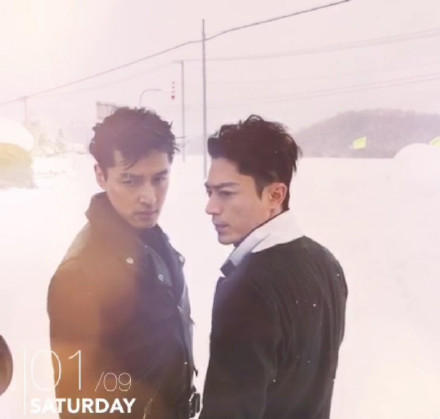 组图:胡歌霍建华雪地里“撒了个野” 同款风衣笑容温暖