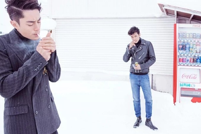 组图:胡歌霍建华雪地里“撒了个野” 同款风衣笑容温暖