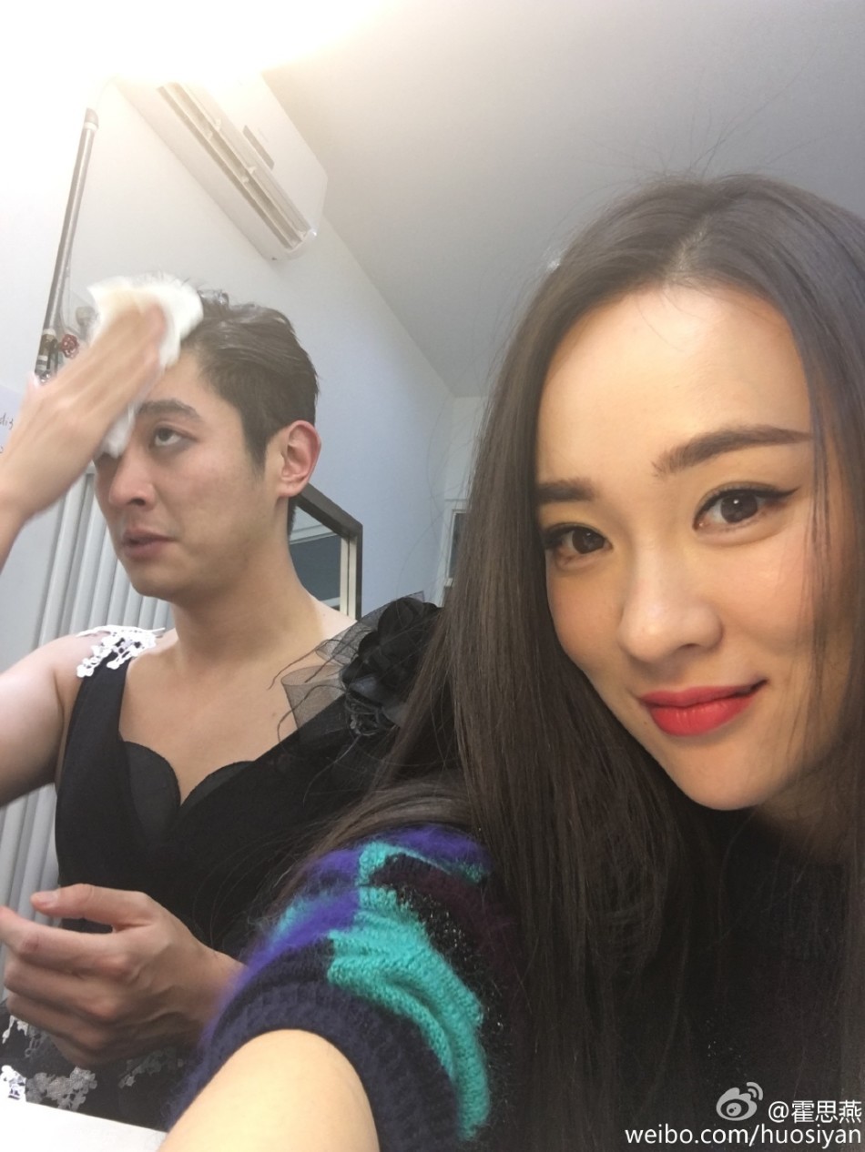 2月25日,霍思燕晒出一组杜江卸妆的照片,照片中杜江红唇低胸装扮女人,性感度不输妻子霍思燕。