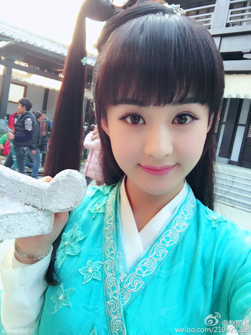 赵丽颖齐刘海水灵动人 《诛仙》片场自拍(图)