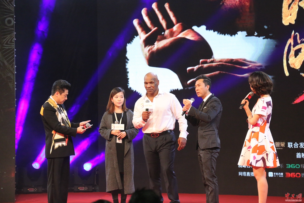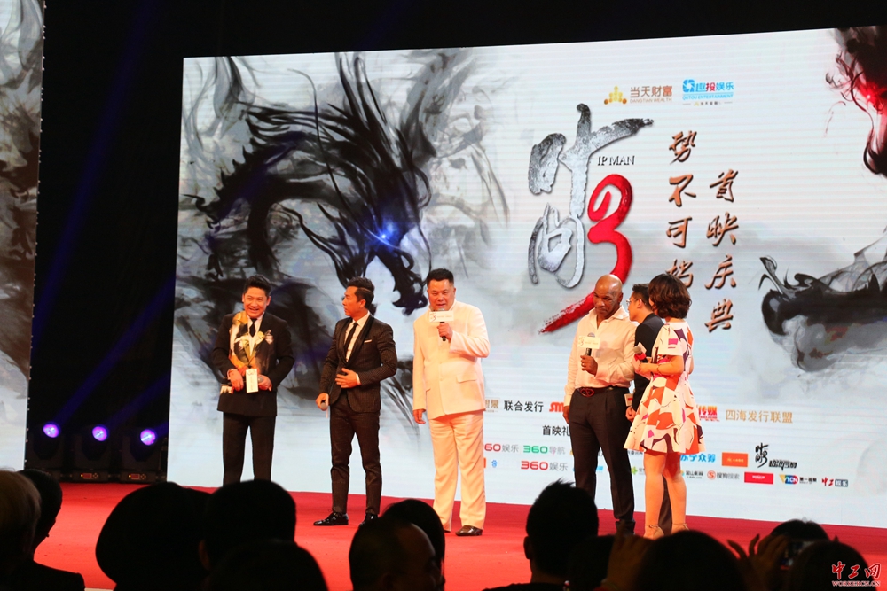 《叶问3》北京首映礼:泰森(左三)、甄子丹(右二)