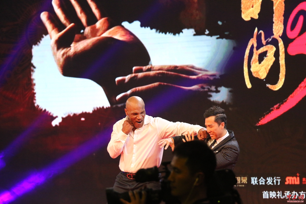 高清:《叶问3》北京首映 甄子丹泰森现场过招、互赠礼物