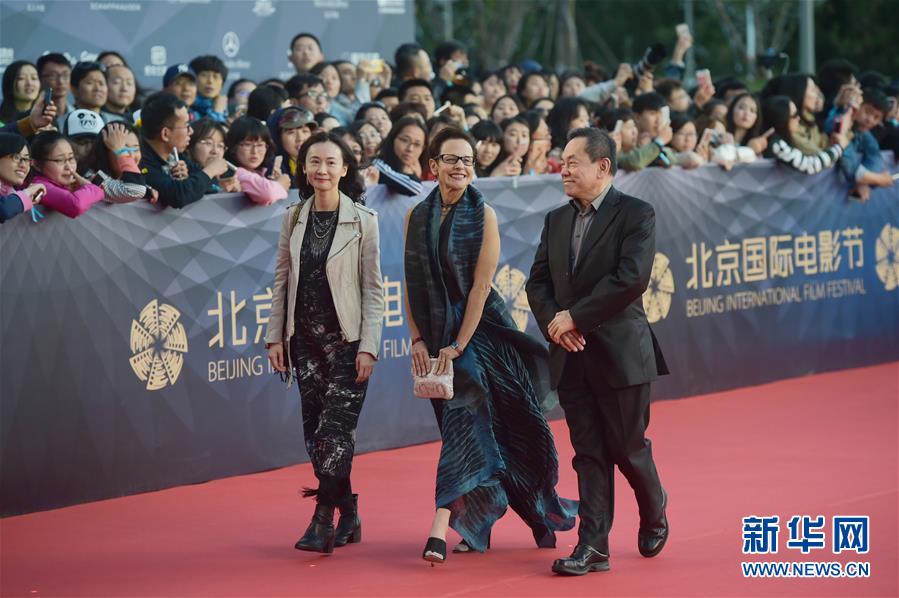4月16日,嘉宾亮相开幕红毯。当日,第六届北京国际电影节在北京怀柔雁栖湖国际会展中心开幕。 新华社记者 陈诚 摄