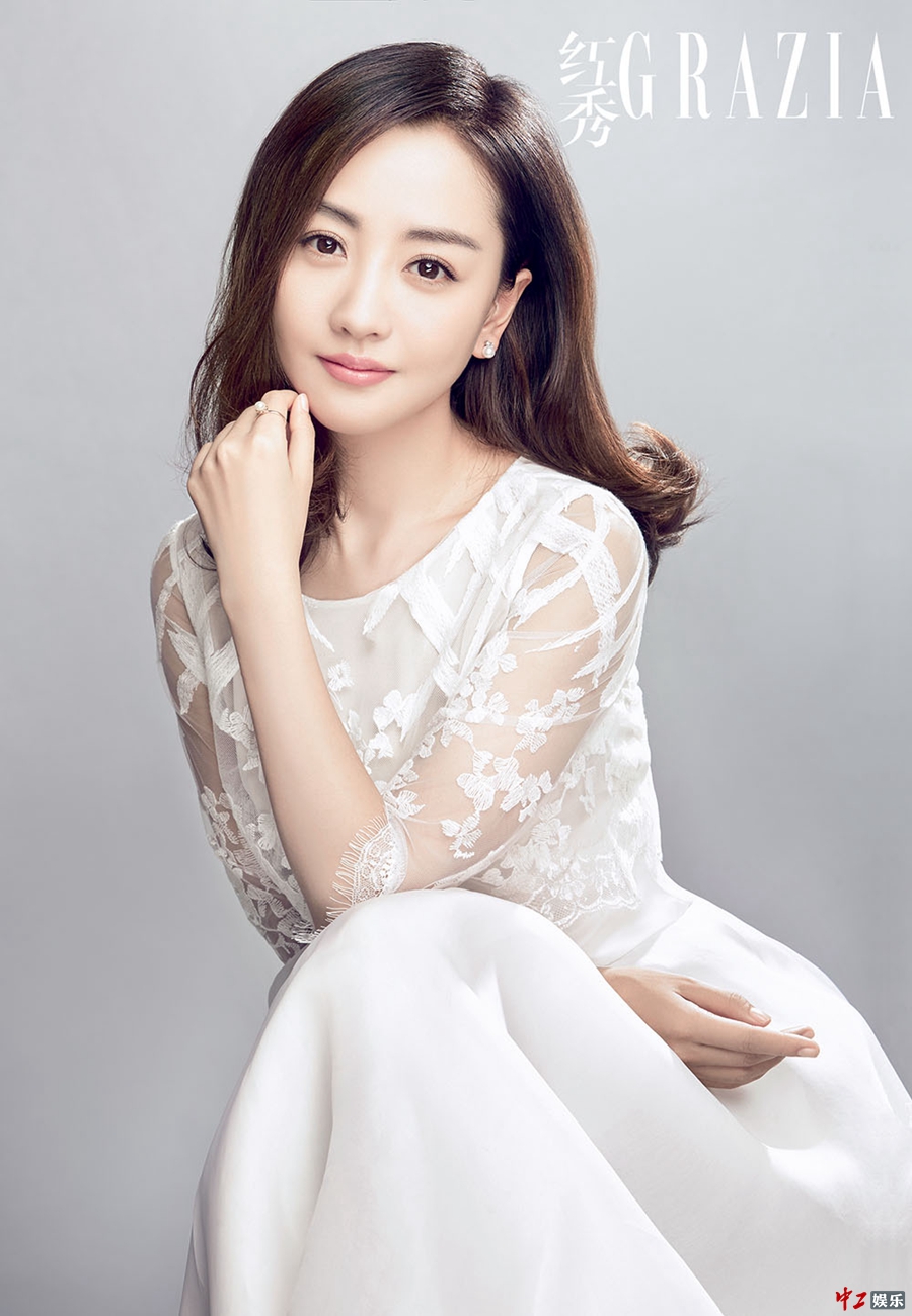 组图:杨蓉身裹白色礼裙 手执花朵端庄雅致