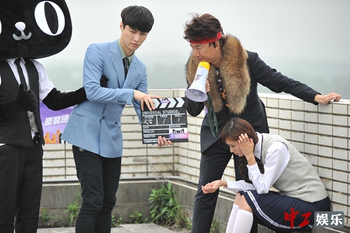 如果让你当一天导演你会导一出怎样的大戏?虽说“极限男人帮”的几位哥哥都是影帝级别的人物,不过在节目中现场展示拍片现场这还真是第一次。一听到这个命题男神们都很兴奋,纷纷摩拳擦掌准备大展身手。黄渤就一脸坚决率先表态:“我要自己说了算!”向来霸气的“帅雷雷”更是不甘示弱,只听他拿着剧场大喇叭大吼了一声:“Action!”,“小场记”张艺兴随即啪嗒一声扣下场记板。此时,一旁穿着学生服的林志玲双手捂着耳朵蹲坐在地上,表情纠结,戏也是越演越激烈。王迅随即说了一句:“我们这个戏讲究真实。”而后一辆轿车冲出,竟把张艺兴撞得飞起!吓得开车的“暖叔叔”黄渤嘴都合不拢!赶紧下车和林志玲一起抢救奄奄一息的“小绵羊”!而后“小绵羊”又蹲在地上为林志玲的膝盖贴起了创可贴。而另一边,孙红雷导演正蹲在地上对着一双鞋“找茬”:“这个袜子配这个鞋,对吗?”精通表演的他还激动的反问:“什么是表演?”此时,“神算子”黄磊的语气也有些焦灼,手持导筒高喊着:“艺兴,快上!” 为了要拍出一场好戏,“极限男人帮”在拍摄现场真的是拼了!