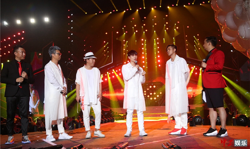 而全场的另一个高潮非黄渤出场之时莫属。刚刚签约索尼唱片的他,在追光灯下,身着水手衫和白色休闲外套惊喜亮相,果然当晚他要演唱的歌曲也与大海有关。“他说风雨中,这点痛算什么?”一曲《水手》勾起多少人对往事的追忆。就在此时曲风一变,“哈林”庾澄庆随即登场,伴乐也变换成《上海滩》的曲调。紧接着,《热情的沙漠》、《蓝精灵》直到《辣妹子》,一段接一段的串烧,哥俩的音越飙越高,现场也越来越嗨,伴随着夜空中散落的雨水,更增一分独特的浪漫情怀。