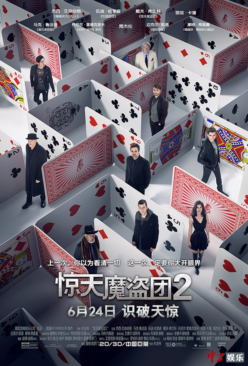 《惊天魔盗团2》将于6月24日,以2D、3D以及中国巨幕格式在内地上映。