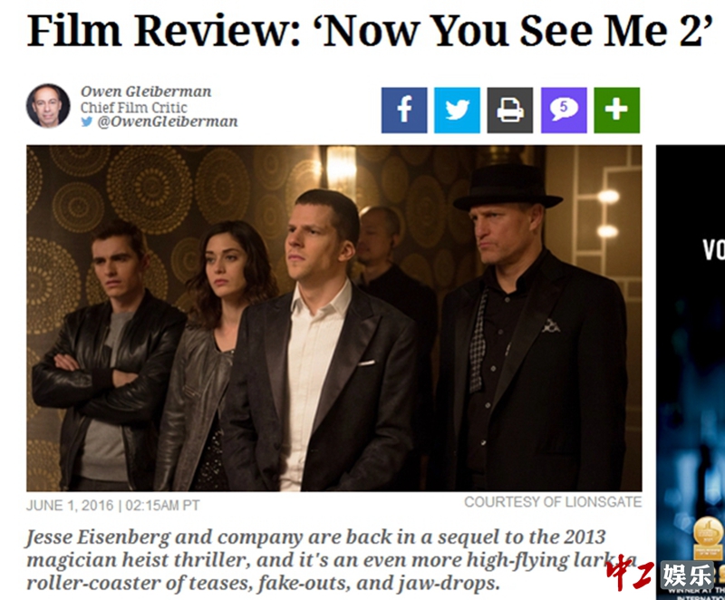 《惊天魔盗团2》北美口碑出炉 被评酷炫超过第一部