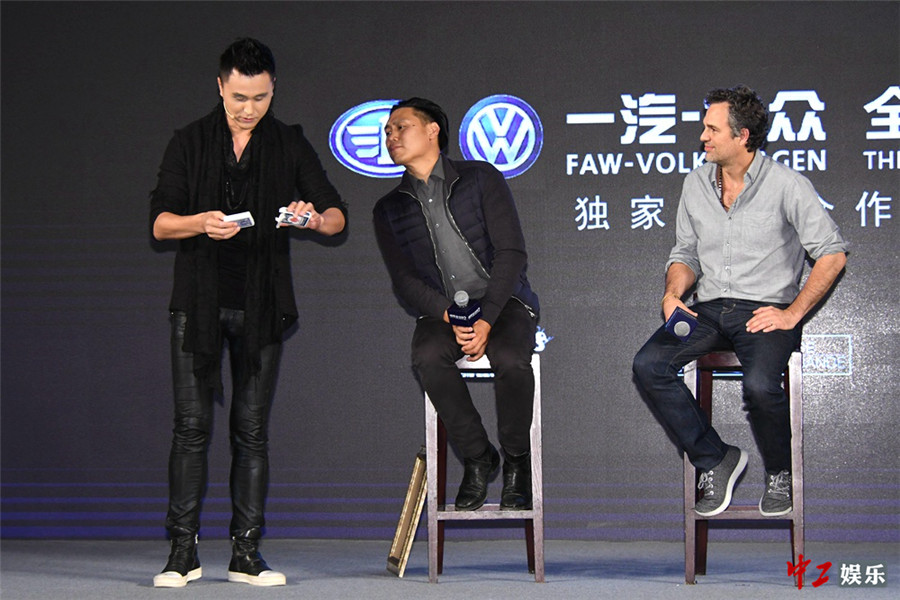 而此次加盟影片的周杰伦则成为片中最大亮点之一。谈到周杰伦出现在片场时的场景,作为好莱坞一线影星的马克·鲁法洛表示“因为知道他在中国是一位巨星,所以自己当时有些紧张,但后来发现他是一个平易近人又真诚的人,他的演技也非常自然。”风趣的马克在现场还开玩笑说“我已经演戏三十年了,才知道自己应该做什么,但周杰伦这么轻易就出类拔萃,所以我有些嫉妒他。”导演朱浩伟则表示“周杰伦是片场最棒的魔术师,甚至超出了我们要求他表现的魔术。”或许在《惊天魔盗团3》中,周杰伦会在其中发挥出更多的魔术技能。在之后的影迷见面会上,马克·鲁法洛更直言“周杰伦就是这部影片的最大惊喜。”