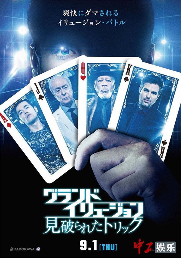 如果说上一集的重点是纸币,这一集的重点则是纸牌。西班牙的海报以魔术中最基本的道具——纸牌为重点,铺满地面的纸牌瞬间把电影的魔术感打造出来。据已上映地区的评价来看,《惊天魔盗团2》中四骑士围绕纸牌展开了一场精彩绝伦的表演,爽到翻嗨到爆的魔术戏份成功让观众的肾上腺素飙升。而至于简单的纸牌如何玩出不可思议的花样,就要等影片上映后再一一揭晓了。
