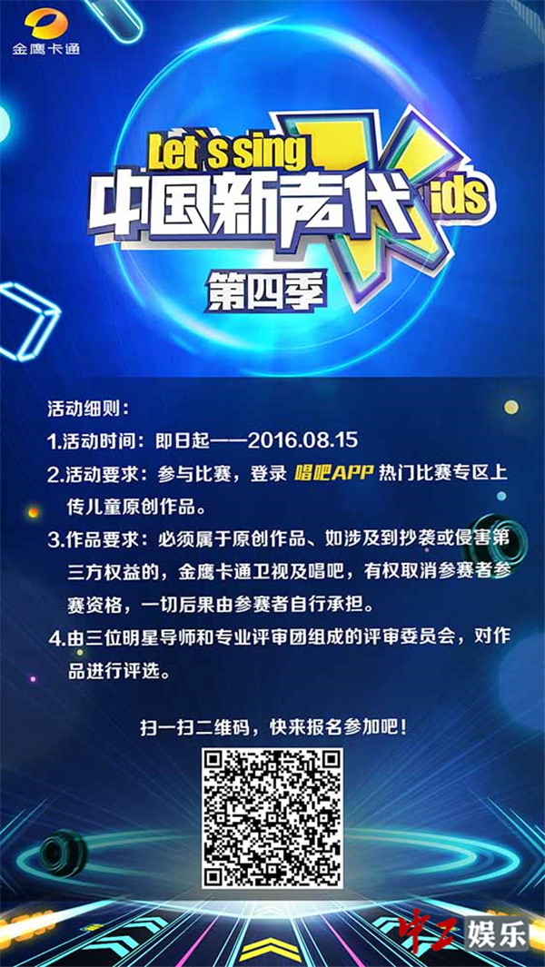 同时, 关注金鹰卡通官方微信、金鹰卡通官方微博以及中国新声代官方微博,可以了解《中国新声代4》更多节目资讯哦。《中国新声代4》强力征集原创儿童歌曲,新时代期待你的新儿歌!