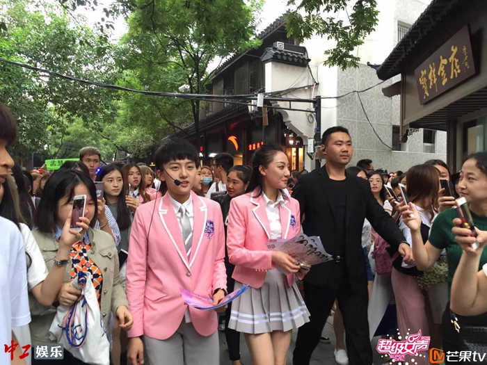 南京街头拉票会,王金金再显女王范儿,粉丝自费为其请保镖,为超女保驾护航。