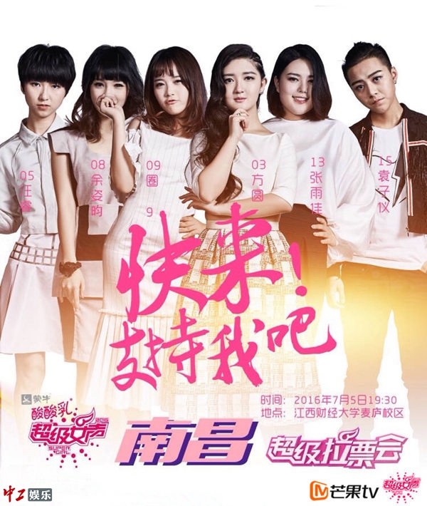 7月5日,19强超女按照上周所分成的“红、白、蓝”三队,再度奔赴全国各地进行“超级拉票会”。“红队”06张晓钰、16王金金、10莫安琪、14黄佳欣、04李雨、20孟慧圆前往重庆;“白队”05汪睿、03方圆、09圈9、15袁子仪、08余姿昀、13张雨佳飞抵南昌;“蓝队”17超级女团、19黄汐源、21金雯昕、07强东玥、11李大霏、12何美延、01周吉芳奔赴昆明,展开为期一天的地面拉票活动。据上周总决赛首轮经验,选手们的赛前人气直接影响队伍之间的战斗格局,因此也希望各地粉丝多多给予超女支持。