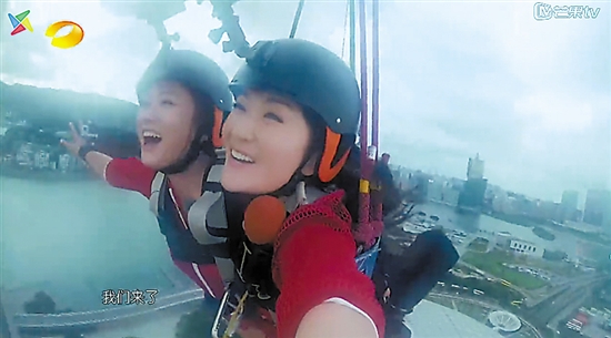 谢娜与陈乔恩主动代替对手接受蹦极挑战
