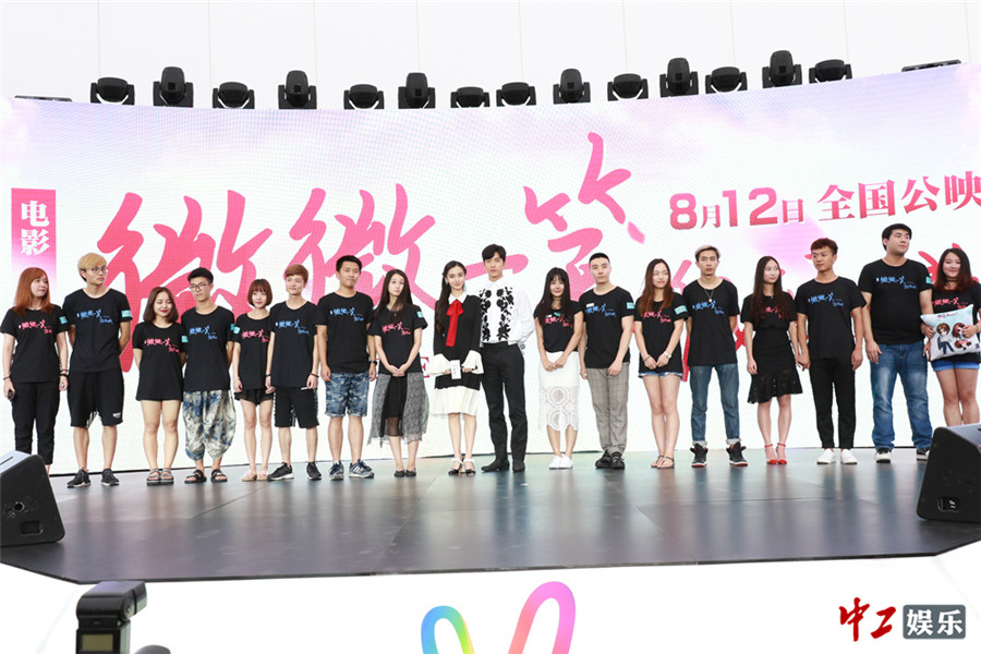 活动当天,Angelababy、井柏然、谭松韵携手青春亮相。在上海长大的Angelababy一出场便亲切地用上海话与大家问好,一旁的井柏然与谭松韵也不甘示弱,纷纷用家乡话开场,一出“方言大荟萃”立刻让现场大笑连连。现场三人各站两队,井柏然率先对两位女生扮演的角色揭老底,劲爆表示作为网瘾少女的贝微微是“36D”,谭松韵饰演的“闺蜜”二喜则是呆萌的小吃货一枚。面对井宝的调侃,“闺蜜党”也不甘示弱,立刻出大招反击,直接抛出井柏然30秒“湿身play”片花,片花中井柏然大秀完美身材,瞬间引爆现场。谭松韵也不免花痴:“多回放几遍呗,出水那段多来几次。”Angelababy则更升级曝出片场花絮:“剧本里有一场戏是他穿着三角泳裤背对着我,但是现在只看到裸上半身的”。不料导演赵天宇也跟着调皮起来:“被我私藏着呢。”