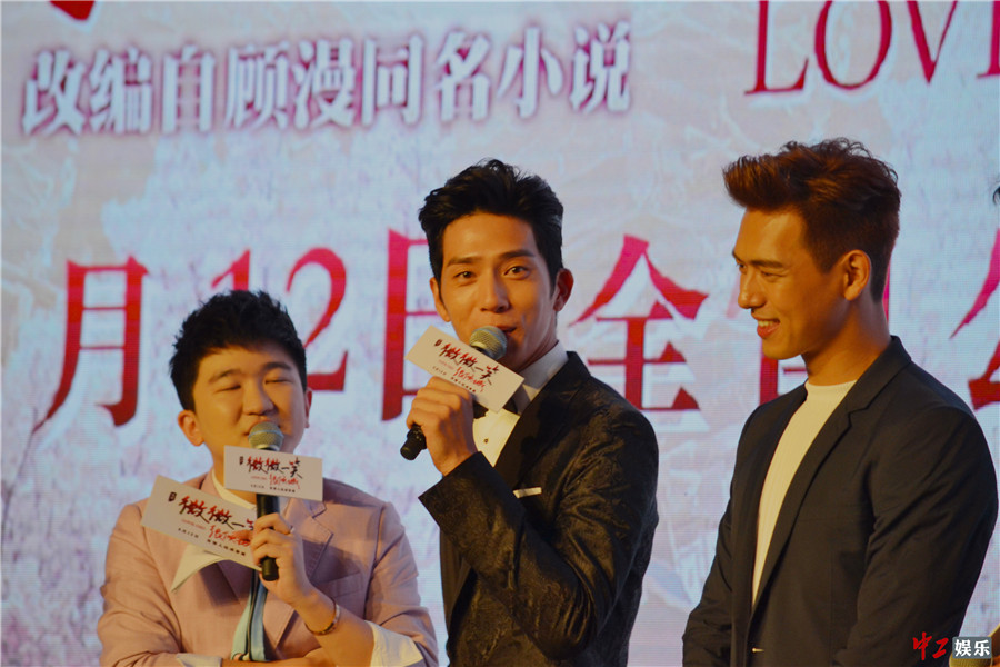 活动当天,全体主创在《简单爱》的甜蜜旋律中以CP档形式青春亮相,但在介绍角色时则瞬间集体破功。原来除了“微笑夫妇”组合之外,其他三对都是官配强组CP,与白宇搭档的吴倩大吐苦水:“在片中没有感情戏,好惨。”李现虽然与谭松韵手牵手甜蜜出场,却无奈透露:“只是替没来的室友照顾一下松韵”,最萌身高差CP瞬间被拆。学霸程伊全程不为所动,一副“学霸的青春没有恋爱”的耿直做派。Angelababy忍不住调侃:“反正有一对肯定配错对了”,短短一句话立刻让场上炸开了锅,“微笑天团”秒变“八卦天团”,纷纷开起王子桀(饰演郝眉/莫扎他)的玩笑,对此表示“一言难尽”的男生宿舍老幺一脸害羞、结结巴巴地请出“孽缘”对象、电影特别出演刘循子墨,技术宅配花美男的奇妙CP让所有主演以及现场观众捧腹不已。