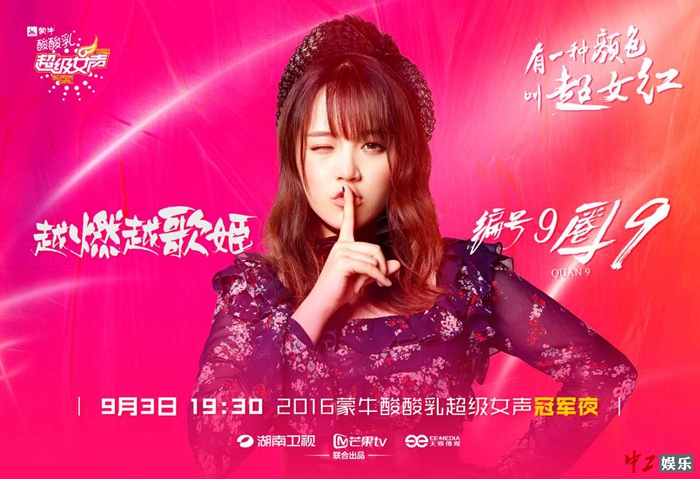 09号超女圈9,从“二次元世界”走出的少女歌姬。她曾经登上过国际万人大舞台,为了实现自己“次元破壁”的梦想,来到超女为理想而战。在众多超女选手中,圈9是“小众文化”的代表人物。能够一路挺进到全国四强,除了歌艺,她更多的是依靠斗志和毅力!