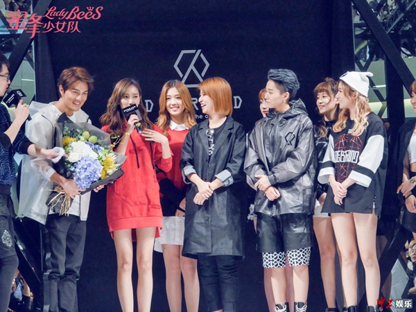 蜜蜂少女队身着潮牌出席活动 与吴克羣投缘热聊
