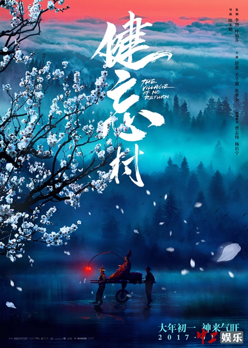 一版“秘境”海报中,冰雪纷飞的漫天背景里,树木徒剩下光秃秃的枝丫,草木银装素裹,王千源提的那盏灯笼,犹如寒冬里的唯一光明,暖黄色调搭配整体暗冷基调,愈发让人感觉扑朔迷离,对剧情充满好奇,又仿佛《健忘村》就是大年初一冬日里的一束温暖,让人暖心过年。另一版“秘境”海报里,一树桃花迎风舞动,花瓣在空中旋转跳跃,占据了大半幅的画面,将健忘村的世外桃源气质体现得淋漓尽致。远处蓝黑色调的群山笼罩在云雾缭绕的仙境中,亦真亦幻,天空的一抹红霞与王千源提的红灯笼相映生辉,一股神秘气息扑面而来,奇幻质感呼之欲出。尤其海报上“神来气旺”传递出“见旺”寓意,预示着影片将在明年大年初一送给观众一份吉年好运,让2017年春节档的氛围变得热闹非凡。