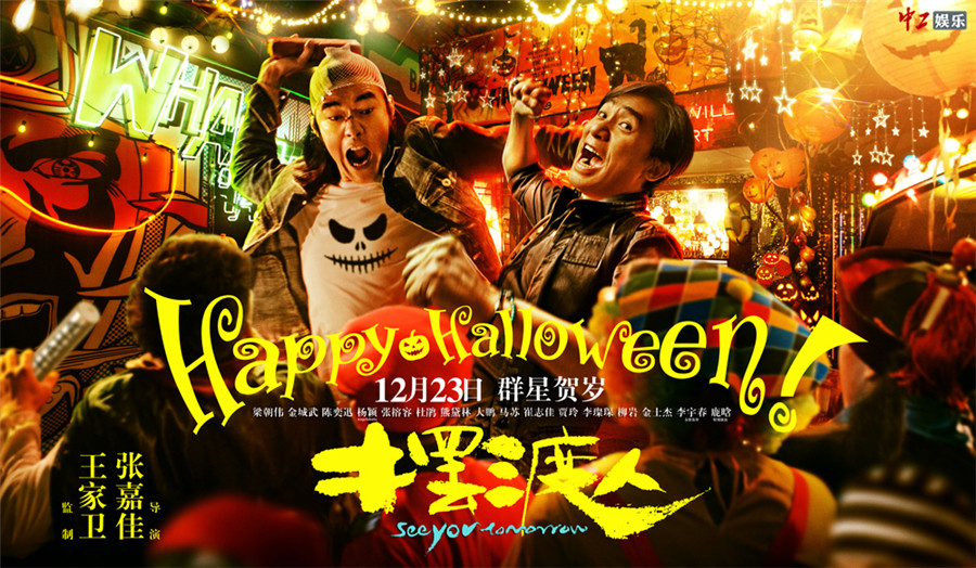 中工娱乐10月31日报道 由王家卫监制、张嘉佳执导,梁朝伟、金城武、陈奕迅、杨颖(Angelababy)、张榕容、杜鹃、熊黛林、大鹏、马苏、崔志佳、贾玲、李璨琛、柳岩联合主演、李宇春友情客串、鹿晗特别出演的贺岁爱情喜剧《摆渡人》今日曝光“两大男神带你飞”万圣节主题海报,梁朝伟、金城武两大殿堂级男神“重出江湖”,癫狂贺岁,带领众星呈现一场光怪陆离的“摆渡”盛事。目前,影片已定档于2016年12月23日正式上映。