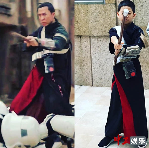 组图:甄子丹儿女齐上阵 Cosplay玩出原力新高度