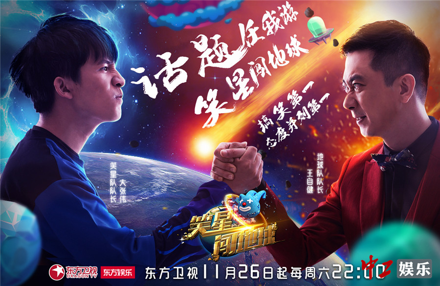 中工娱乐11月8日报道 喜剧也能辩论?东方卫视全新话题喜剧综艺《笑星闯地球》将告诉你答案。节目于今日曝光首款海报,海报以红蓝为主色调,呈现激烈的对抗氛围。大张伟、王自健分别化身笑星队、地球队队长首次加盟原创话题喜剧综艺,节目现场领队“吵架”,嘴炮横飞,你招架得住吗?