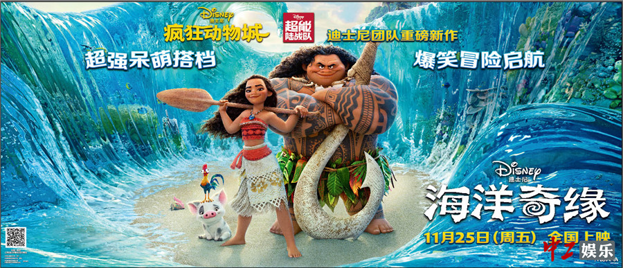 中工娱乐11月30日报道 《疯狂动物城》、《超能陆战队》、《冰雪奇缘》原班人马打造的迪士尼年底收官之作《海洋奇缘》来势汹汹。上映以来不仅强势登顶北美票房排行榜,在昨日最新公布的第44届动画安妮奖(动画界奥斯卡)提名中,《海洋奇缘》不负众望拿下多项提名,除了最重头的最佳动画,还荣获最佳配音、最佳动画效果,以及最佳角色设计等多个提名。国内前景亦是一片大好,凭借不俗口碑拉动票房长线增长,被网友称为11月“暖萌治愈”合家欢首选。
