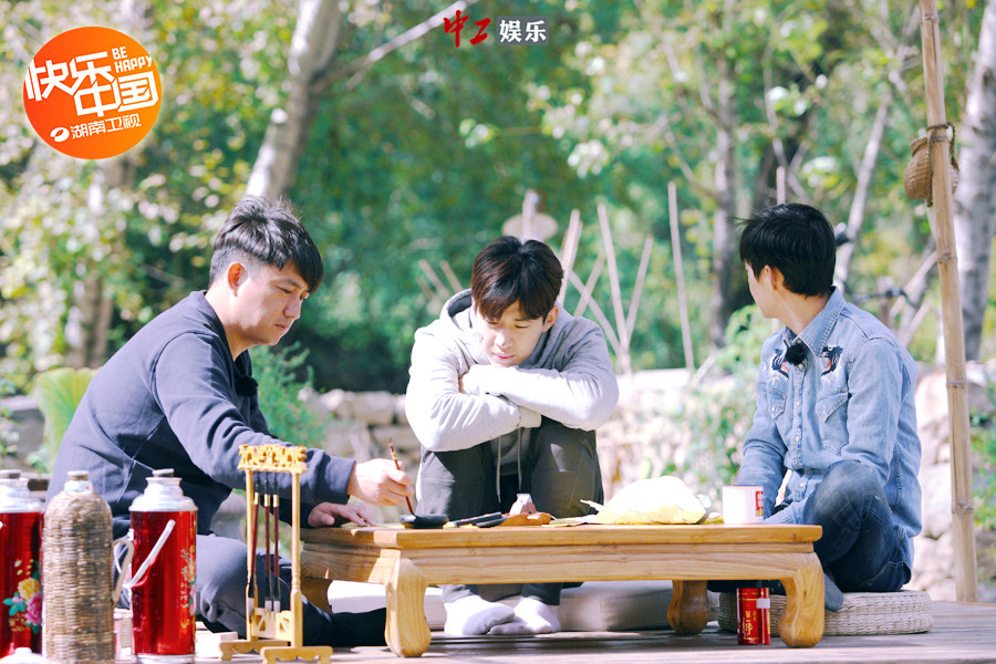 何炅先是执笔写下两个毛笔字,随后便让刘宪华有样学样地自己临摹。不到五分钟,刘宪华就写出了非常漂亮的“刘”字,让何老师十分欣赏:“真的很有天赋!”受到称赞的刘宪华一脸正经地开始嘚瑟:“我很专业,因为我生下来就是‘刘’,所以我比你们‘牛’,对吗?”忍着笑的黄磊何炅两人很给面子:“对,你比我们‘牛’。”