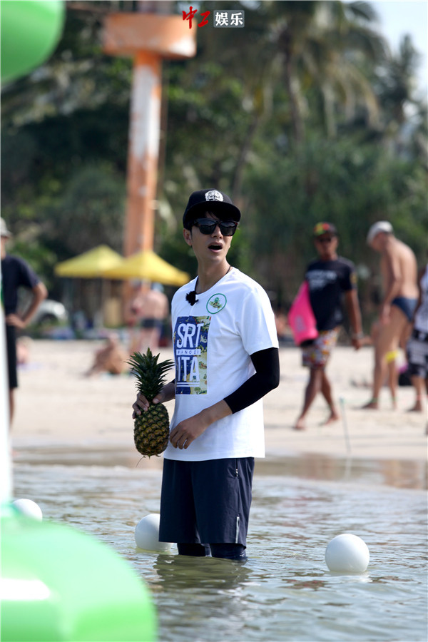 《二十四小时》大张伟海边搞笑抛菠萝 自称发型很搭配