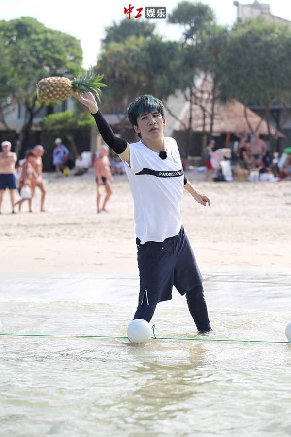 《二十四小时》大张伟海边搞笑抛菠萝 自称发型很搭配