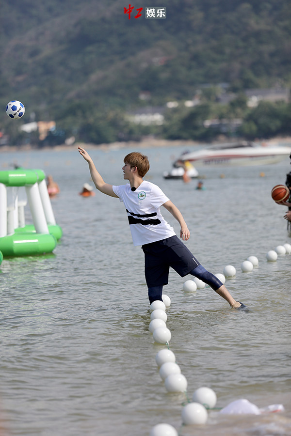 《二十四小时》大张伟海边搞笑抛菠萝 自称发型很搭配