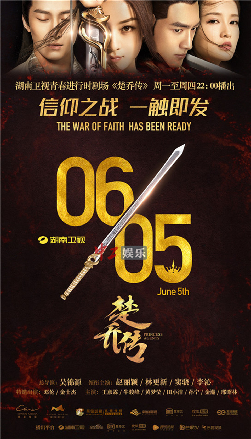 中工娱乐2017年5月19日报道 日前,电视剧《楚乔传》正式宣告定档,将于6月5日强势登陆湖南卫视青春进行时剧场,每周一至周四22点两集连播。与此同时,剧集一并曝光了一张极简震撼的定档海报,再造舆论狂欢。这部由慈文传媒蜜淘影业和克顿传媒辛迪加影视联合出品,上海蜜淘影业有限公司制作发行,赵丽颖、林更新、窦骁、李沁领衔主演,邓伦、金士杰特邀出演,王彦霖、牛骏峰、黄梦莹、田小洁、孙宁、金瀚、邢昭林联袂主演的年度顶级钜制近来大动作频频,一轮接这一轮的海报视频“轰炸”可谓牢牢吸引了业内外的强烈关注,定档信息的公布也如同一剂“兴奋剂”,预示着燃烧收视热情的精彩即将来袭。