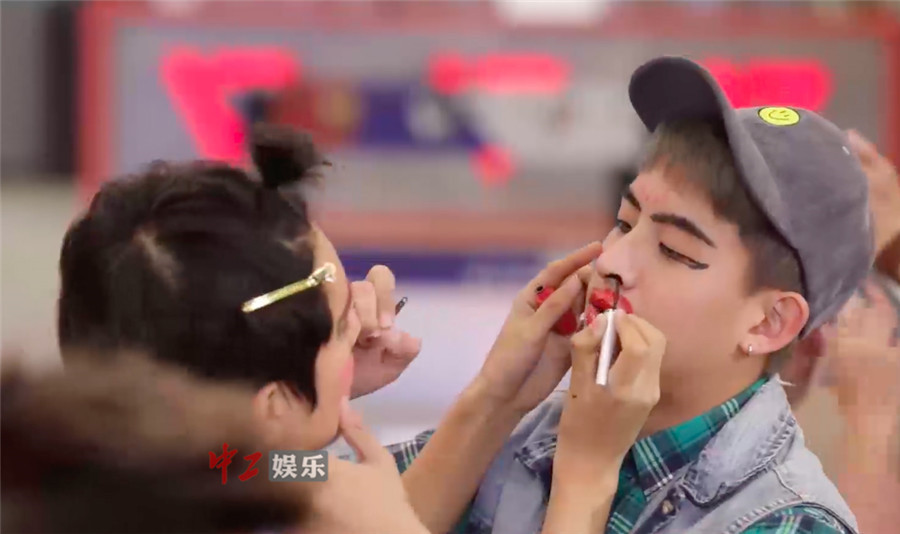 《快男》上演直男化妆术大比拼 焦迈奇在尹毓恪脸上画乌龟
