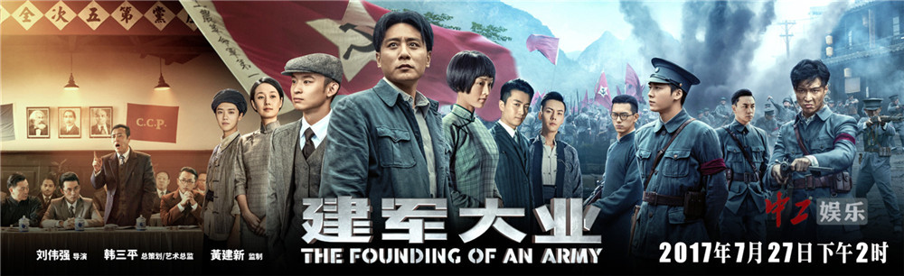 中工娱乐2017年7月27日报道 由中国电影股份有限公司、博纳影业集团股份有限公司、南昌广播电视台、中国人民解放军八一电影制片厂、上海三次元影业有限公司和寰亚电影制作有限公司出品,刘伟强执导,韩三平任总策划兼艺术总监,黄建新任监制的热血战争巨制《建军大业》7月27日下午2点正式登陆全国院线,片方曝光三款风云激荡版海报,刘烨、朱亚文、黄志忠、王景春、欧豪、刘昊然、马天宇、张艺兴、张涵予、霍建华、张天爱等均亮相,再现当年势力交锋、风云变幻的时局。此前,电影《建军大业》已在全国范围内举办了多场提前观影,观众们均表示十分惊喜,“震撼热血,十足过瘾”,更有不少业内人士看好该片最具暑期档票房冠军之势。在此特盘点电影《建军大业》九大精彩看点,一览这部暑期档最强片的精彩之处。