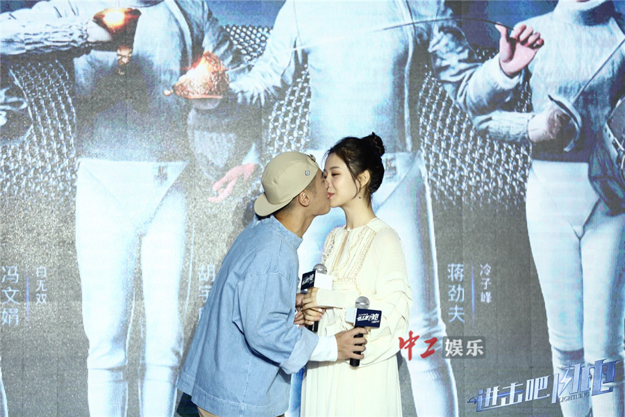 这个小惊喜过后,“场景还原”的游戏把现场的气氛再次推向高潮,当初播放蒋劲夫教导胡宇威花样撩妹,胡宇威学会之后“现学现卖”,现场演示壁咚冯文娟,一旁的蒋劲夫甘当二人壁咚的人墙,并开起胡宇威玩笑:“手好大好暖”。最后经典的“吃饼干”的登场,差点让场面失控,蒋劲夫和陈娅安同吃一根几乎不到一公分饼干,二人深情注视彼此,几乎贴面而过,脸红心跳的气氛瞬间嗨爆全场,粉丝尖叫更是起伏不断。