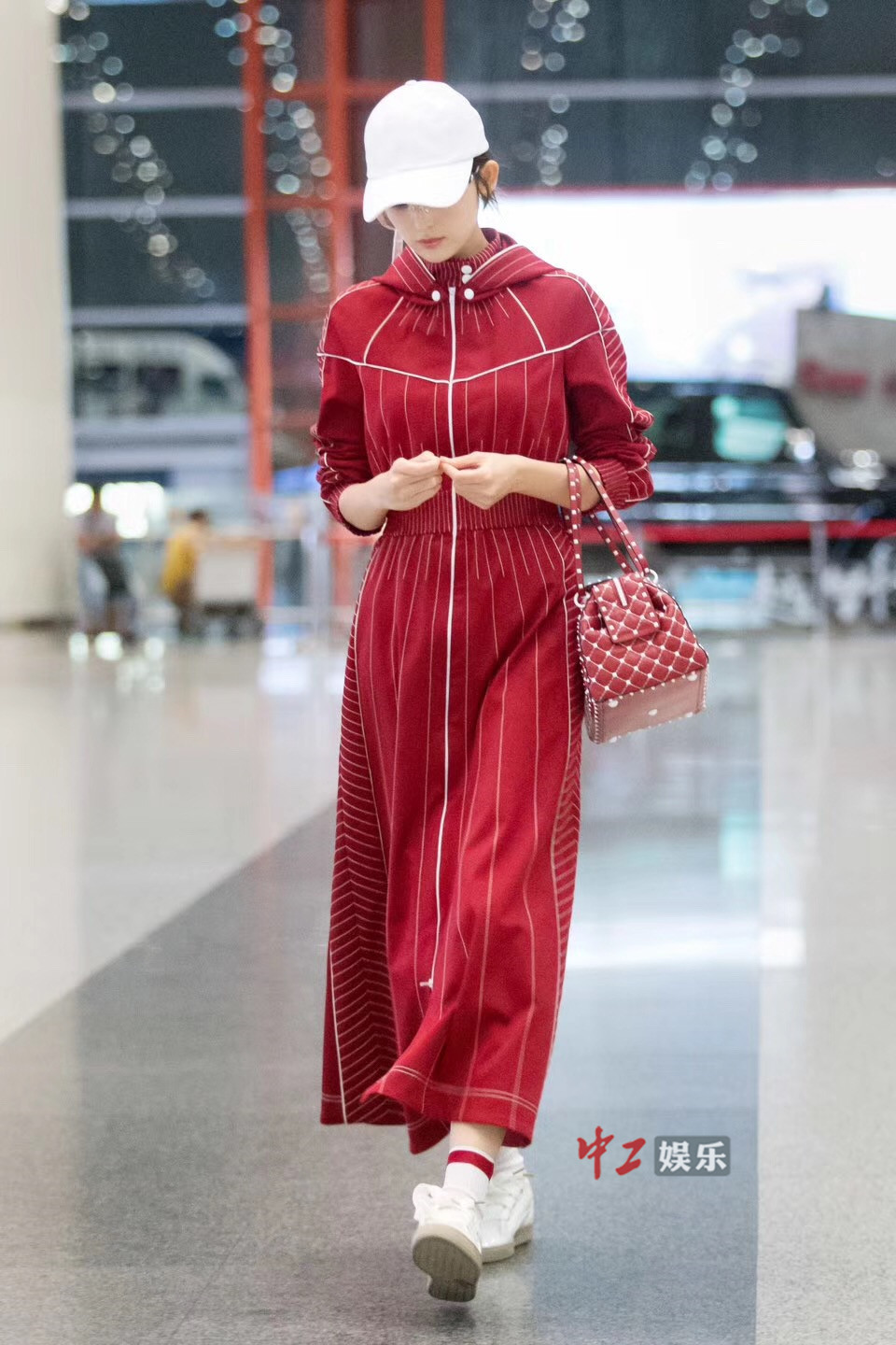 娜扎现身北京机场 红衣look分外夺目灵动唯美