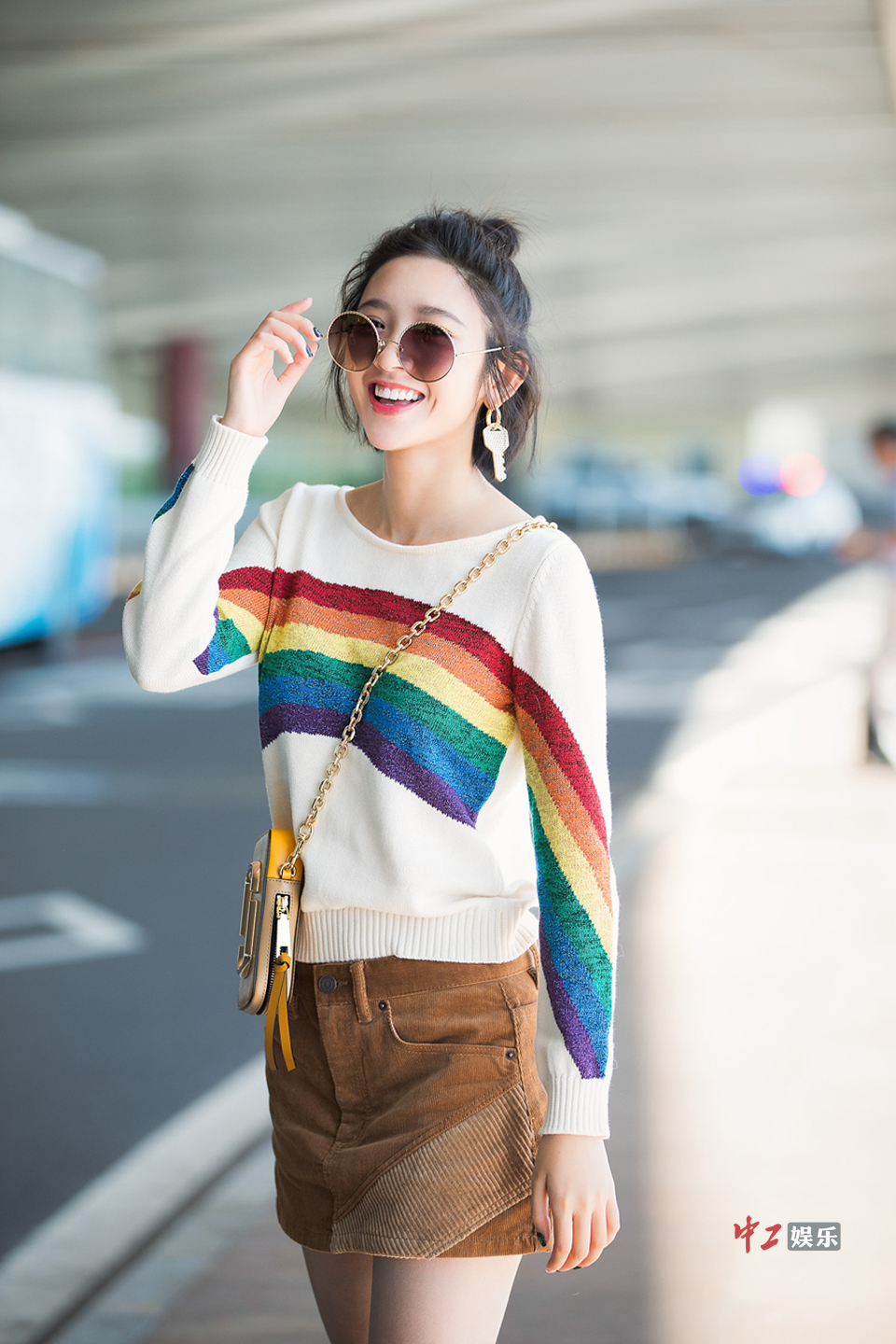 唐艺昕启程纽约时装周 元气街拍演绎“彩虹色”