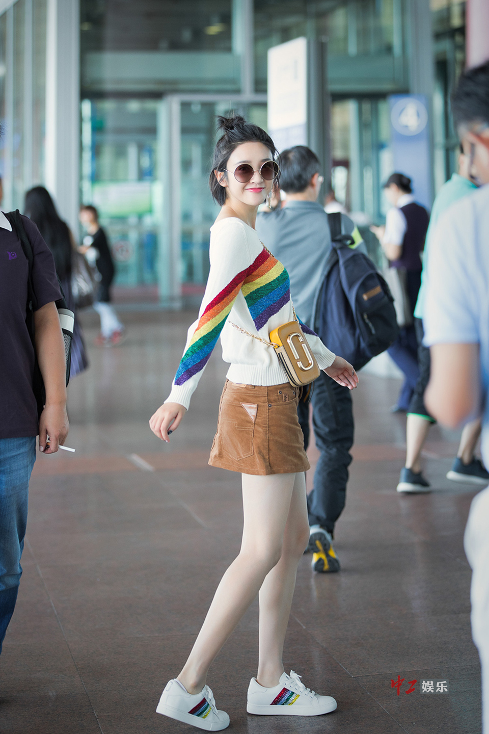 唐艺昕启程纽约时装周 元气街拍演绎“彩虹色”