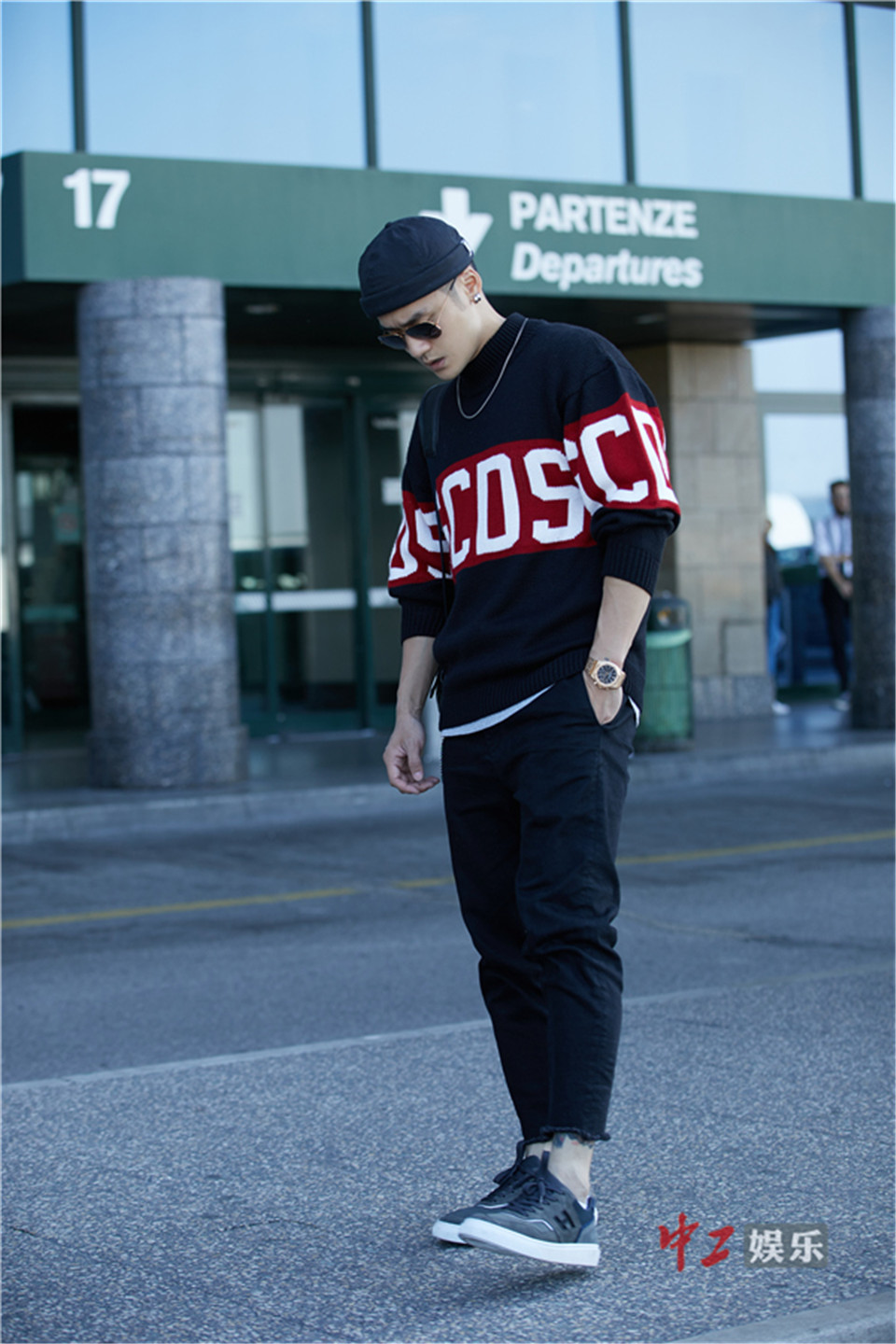 蒋劲夫米兰时装周归来 黑超搭毛衣玩转初秋机场fashion