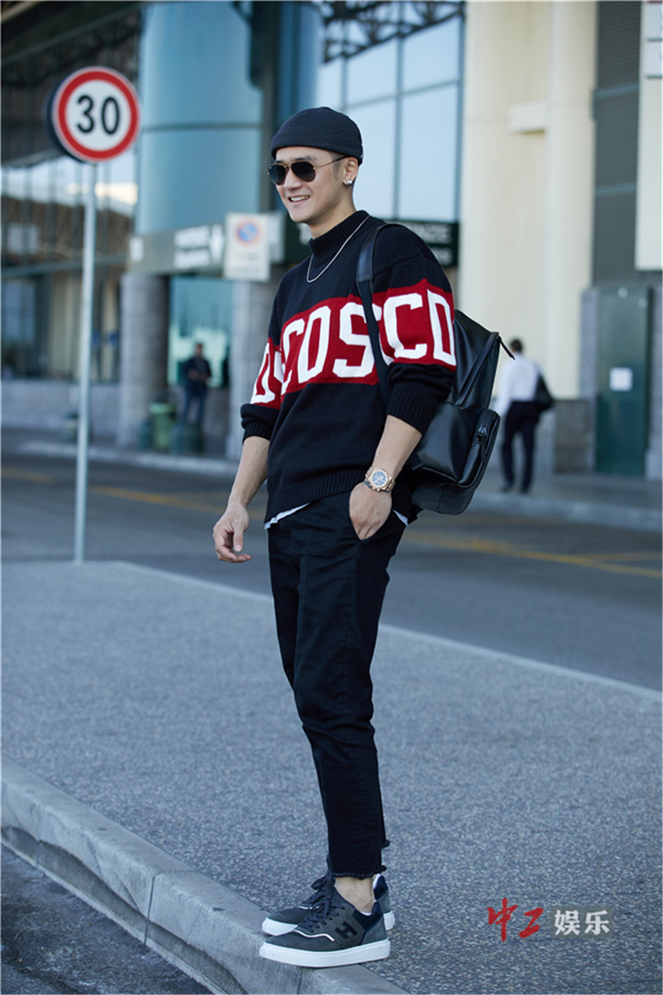 蒋劲夫米兰时装周归来 黑超搭毛衣玩转初秋机场fashion