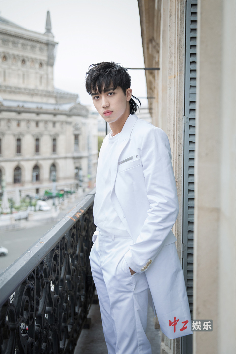 许魏洲白色西装巴黎看秀 尽显白马王子既视感