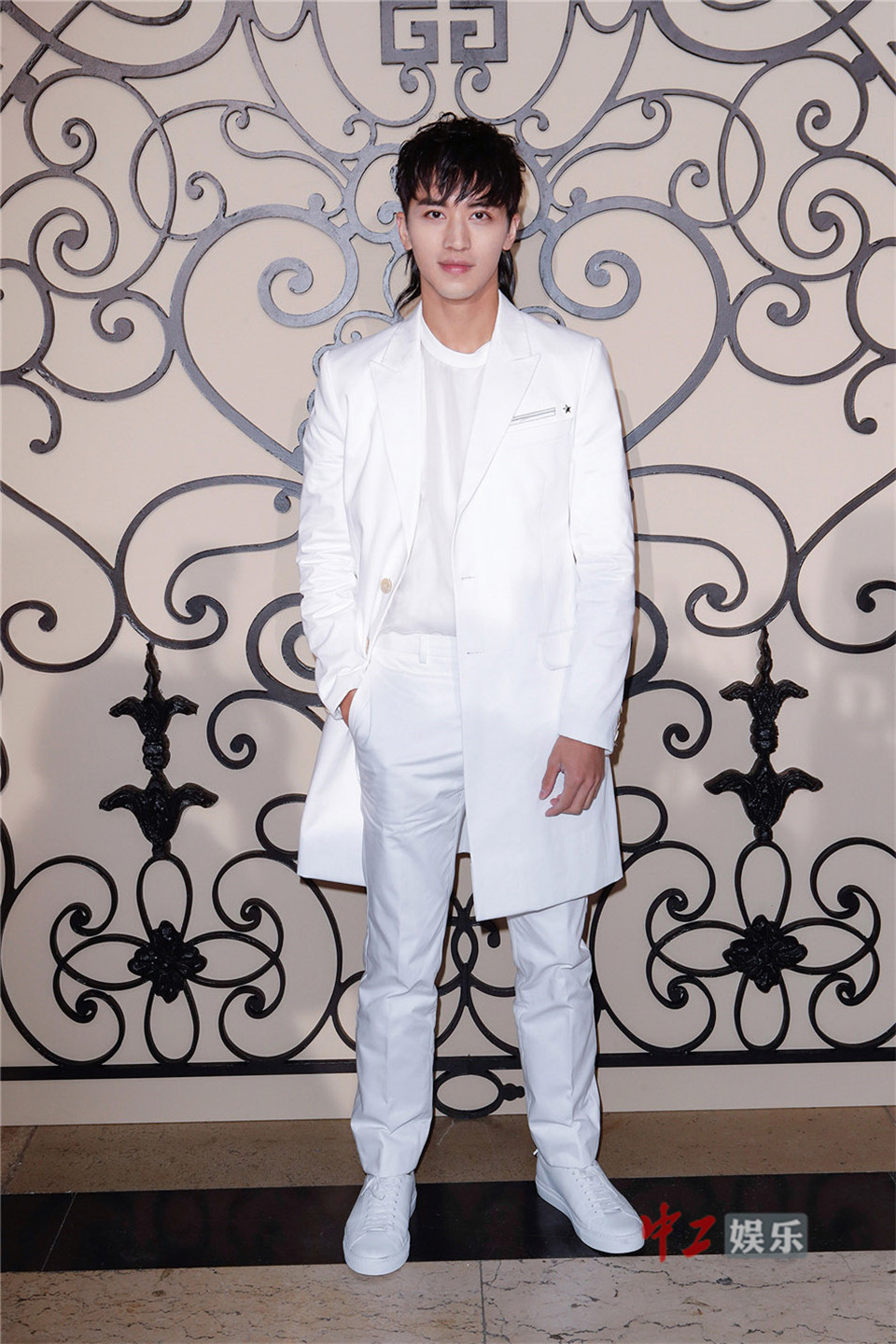 许魏洲白色西装巴黎看秀 尽显白马王子既视感