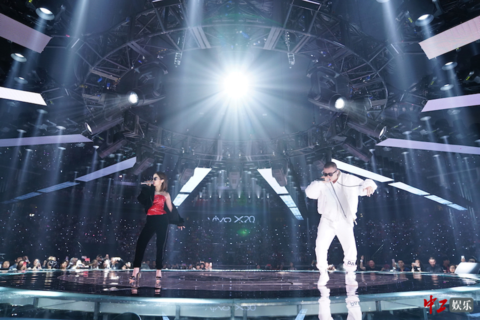 三个蓝色光能环,仿佛来自科幻世界的未来力量,由外向内富有节奏的脉动,向所有人输送潘玮柏的音乐能量。当机械吊臂把风光对准出现在舞台中央的潘玮柏,万众瞩目的他就是宇宙中独一无二的“神”;“我是追逐你的眼眸,总在孤独时候眺望夜空……”《追光者》是对可望却不可及的爱情咏唱,布满花纹的舞台仿佛晶莹剔透的美妙瓷器,一行行歌词接连涌现又随即烟消云散,踏歌而行的汪苏泷,既是深情缱绻的歌者,又是仙气飘飘的少年;当张信哲吟唱着《用情》款款而来,出现在地屏上的黑白琴键,仿佛弹奏出悠扬的旋律,一根根跳动的火柴,又点燃观众心中的火花,与《难以抗拒你的容颜》情感共振;还有伴随吴亦凡出场的虚拟“神龙”,创造了“蓝鲸出海”之后新一轮的虚拟现实技术王炸,让吴亦凡化身“龙的传人”,其炫酷的出场方式,无疑成为今年跨年演唱会最让人难以忘怀的高光时刻。