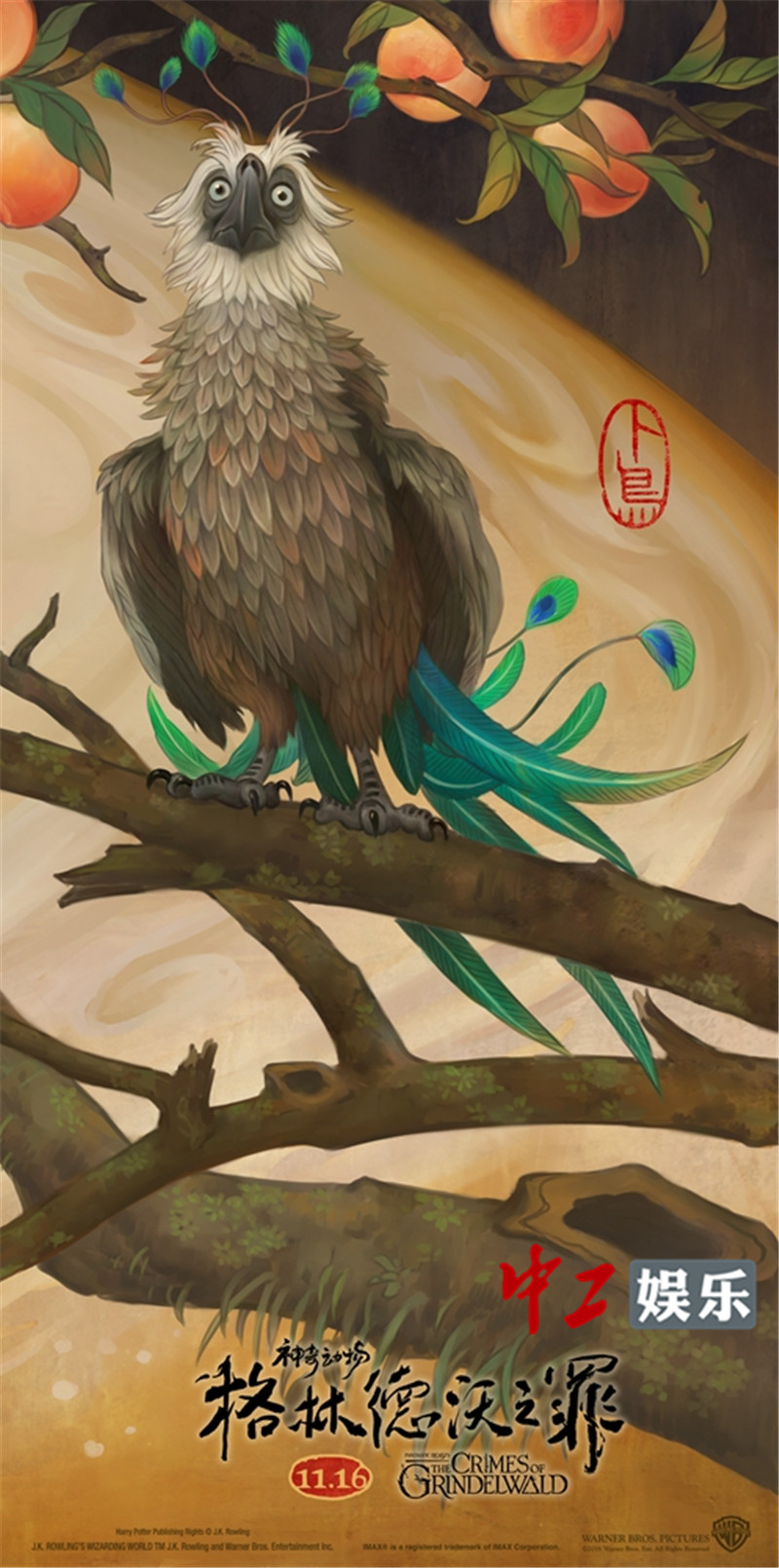 《神奇动物:格林德沃之罪》这款海报的创意及绘制都由中国艺术家张春操刀,整体以桃树为载体,神奇动物们高低有序错落有致,寓意“六福海报得神兽”,谐音中国的“福禄寿”,既融合了中国的传统文化,又表达了对电影以及观众们的美好祝愿。此外,“纽特动物园”电影幕后特辑也同步解锁,中国神兽驺吾、马形水怪、护树罗锅、嗅嗅等新老神奇动物悉数亮相,更多隐藏技能、习性曝光引人惊叹。11月16日,走进影院开启魔法之旅!