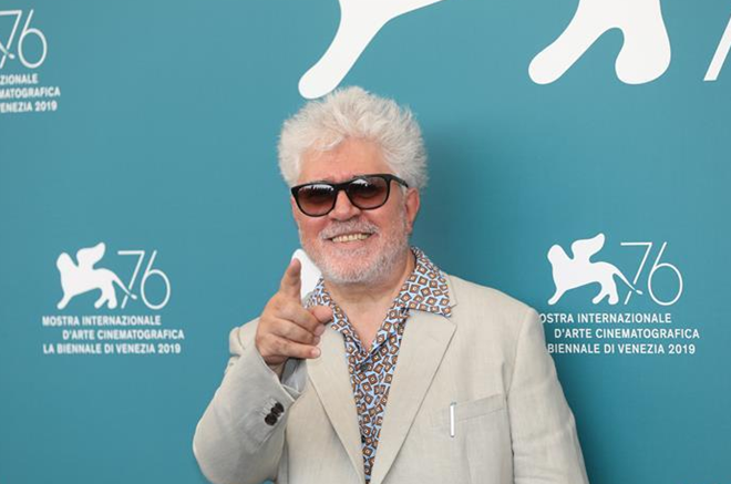 8月29日,在意大利威尼斯,佩德罗·阿莫多瓦出席拍照式。当日,西班牙电影导演佩德罗·阿莫多瓦获得第76届威尼斯电影节终身成就金狮奖。