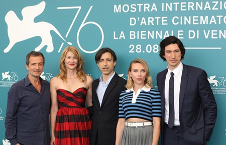 8月28日,在意大利威尼斯,第76届威尼斯电影节主竞赛单元的评委出席拍照式。第76届威尼斯电影节于8月28日至9月7日在意大利水城威尼斯举行。