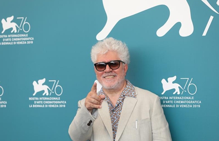 8月29日,在意大利威尼斯,佩德罗·阿莫多瓦出席拍照式。当日,西班牙电影导演佩德罗·阿莫多瓦获得第76届威尼斯电影节终身成就金狮奖。