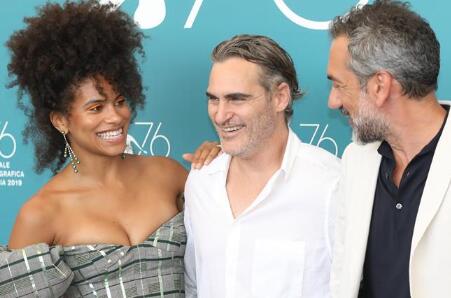 在意大利威尼斯,导演托德·菲利普斯(右)与演员杰昆·菲尼克斯出席电影《小丑》拍照式。 电影《小丑》入围第76届威尼斯电影节主竞赛单元。