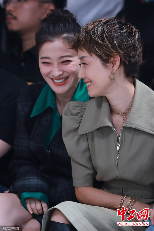 2019年9月9日,北京,IMMI 2019秋冬系列发布会举行。马伊琍穿泡泡袖长裙优雅看秀,和梅婷谈笑风生;梅婷皮肤状态超好,穿格子连衣裙青春美丽。热依扎梳哪吒头化“珍珠泪滴妆”俏皮可爱。